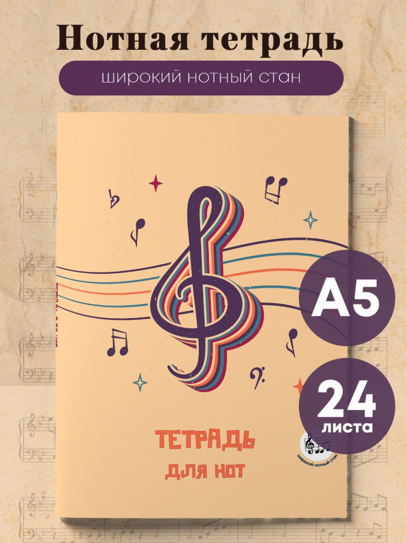 Музыка начинается с первой ноты — выберите тетрадь, которая вдохновляет! Помогите юному музыканту быстро и с интересом освоить нотную грамоту! Эта тетрадь создана специально для детей, которые начинают свое знакомство с музыкой: она помогает развивать слух, память и творческое мышление, превращая обучение в вдохновляющий процесс. Почему родители выбирают именно эту тетрадь: - Расширенный нотный стан — удобен для первых шагов и более сложных произведений. - Компактный формат А5 — идеально подходит для занятий дома, на уроках и в дороге. - Плотная белая офсетная бумага — не просвечивает, выдерживает многократное стирание карандашом. - 48 страниц — оптимально для учебного курса и регулярных занятий. Тетрадь станет надежным спутником в музыкальном обучении — здесь удобно писать, делать заметки и фиксировать первые мелодии. Подарите ребенку возможность развивать талант и почувствовать себя настоящим композитором.