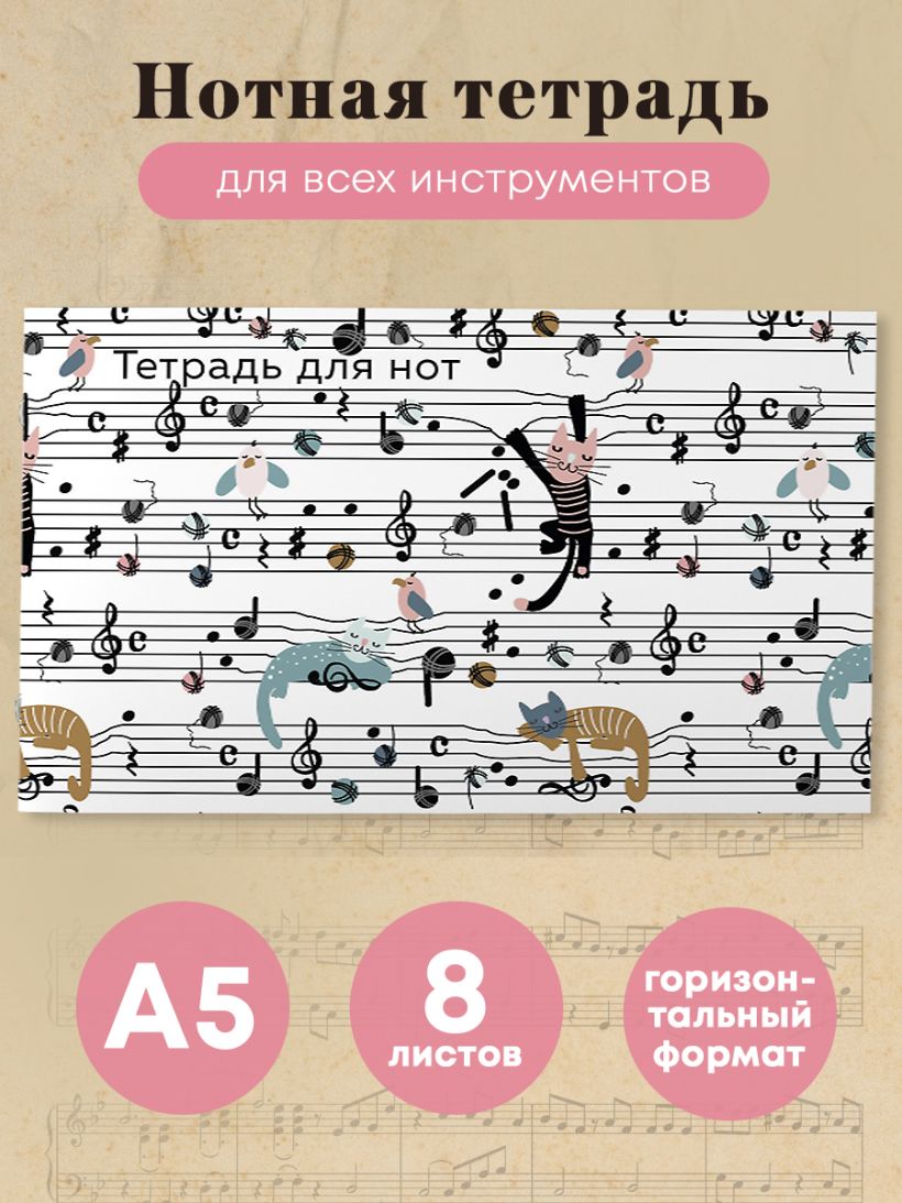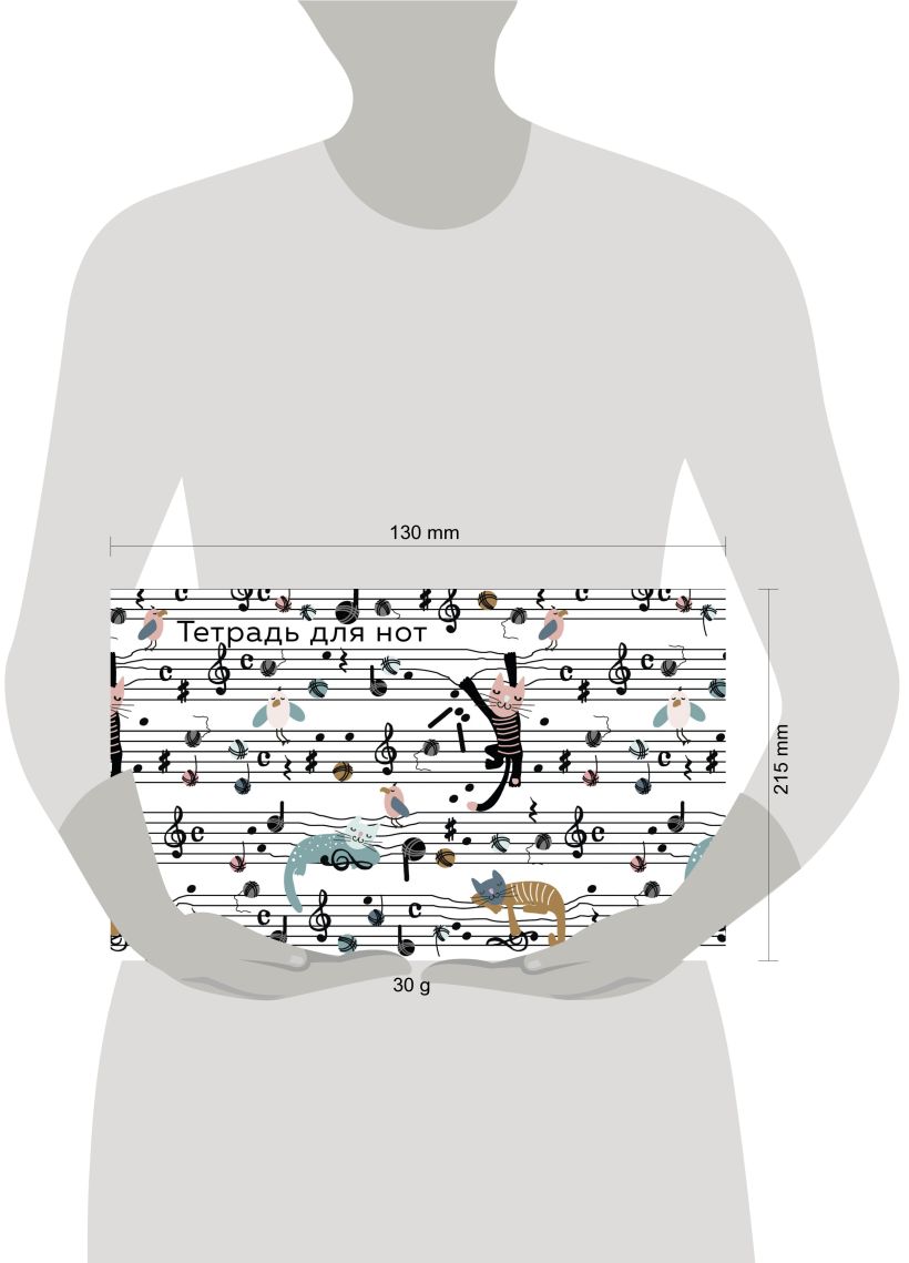 Эта тетрадь для нот станет помощником вашего ребенка в обучении и поможет быстрее освоить нотную грамоту, чтобы перейти к практике. Удобный формат, плотная белая бумага и дополнительные материалы на обороте обложки сделают процесс познания более продуктивным. Помогите своему ребенку проявить индивидуальность. Выбирайте лучшее! Технические параметры: - Удобный формат А4. - 48 страниц на офсетной бумаге. - Классический блок с нотным станом.