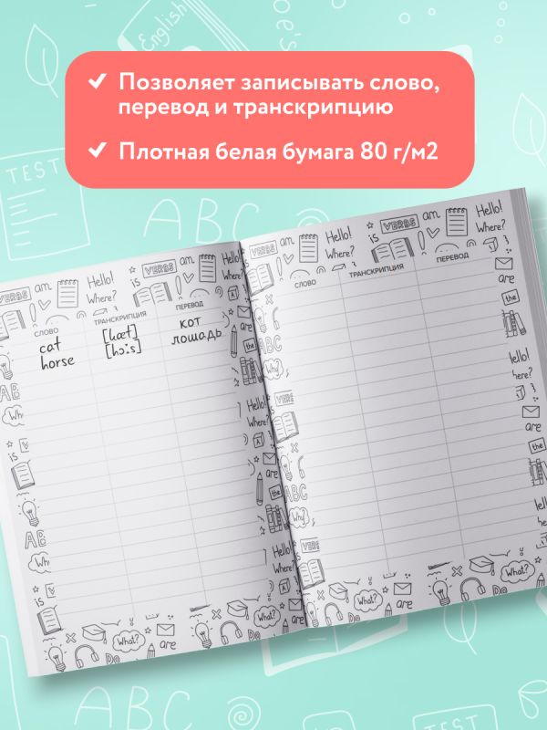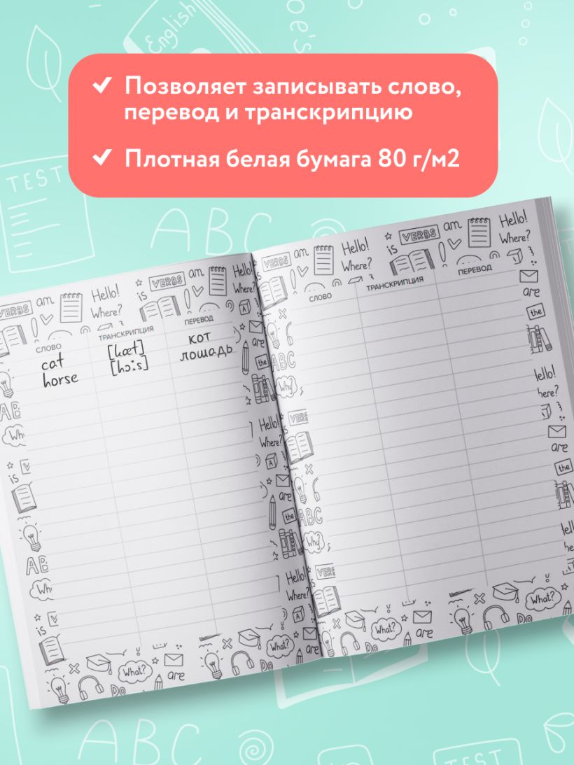 Большой словарный запас — ключ к общению на иностранном языке. Стильная и удобная тетрадь предназначена для записи любых иностранных слов, блок содержит три столбика: для слов на иностранном, их транскрипций и перевода. Качественная белая бумага, стильное внутреннее и внешнее оформление, удобная структура блока, — всё создано для приятного и эффективного использования! Подходит для занятий в школе, а также самостоятельного обучения. Для школьников и взрослых!
