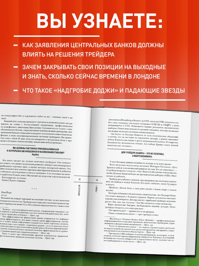 «Это книга не от какого-нибудь трейдера-любителя. Это уникальный случай, когда своим опытом делится представитель индустрии — профессиональный трейдер высочайшего класса. Брент Доннелли долгое время проработал старшим валютным трейдером в крупнейшем инвестиционном банке HSBC, в Нью-Йоркском подразделении. Уже один этот факт является своего рода “печатью качества” и делает его книгу уникальной. Отдал бы многое за то, чтобы эта книга попалась мне раньше». — Ренат Валеев, CFA, трейдер с 15-летним опытом,
