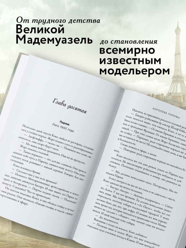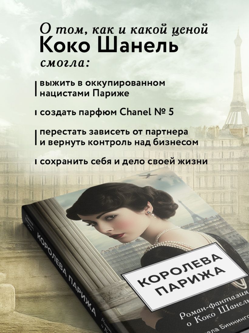 Роман-фантазия о самом трагичном и таинственном эпизоде в биографии Коко Шанель — жизни в оккупированном нацистами Париже. Автор изящно дополняет реальные факты легендами о судьбе Великой Мадемуазель. Это книга о дружбе и предательстве, о трусости и бесстрашии, о том, на что способна пойти женщина, чтобы сохранить себя и дело своей жизни.
