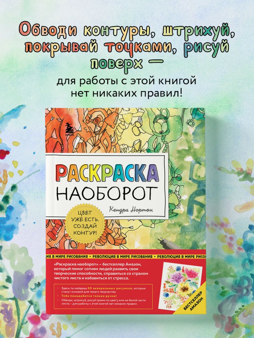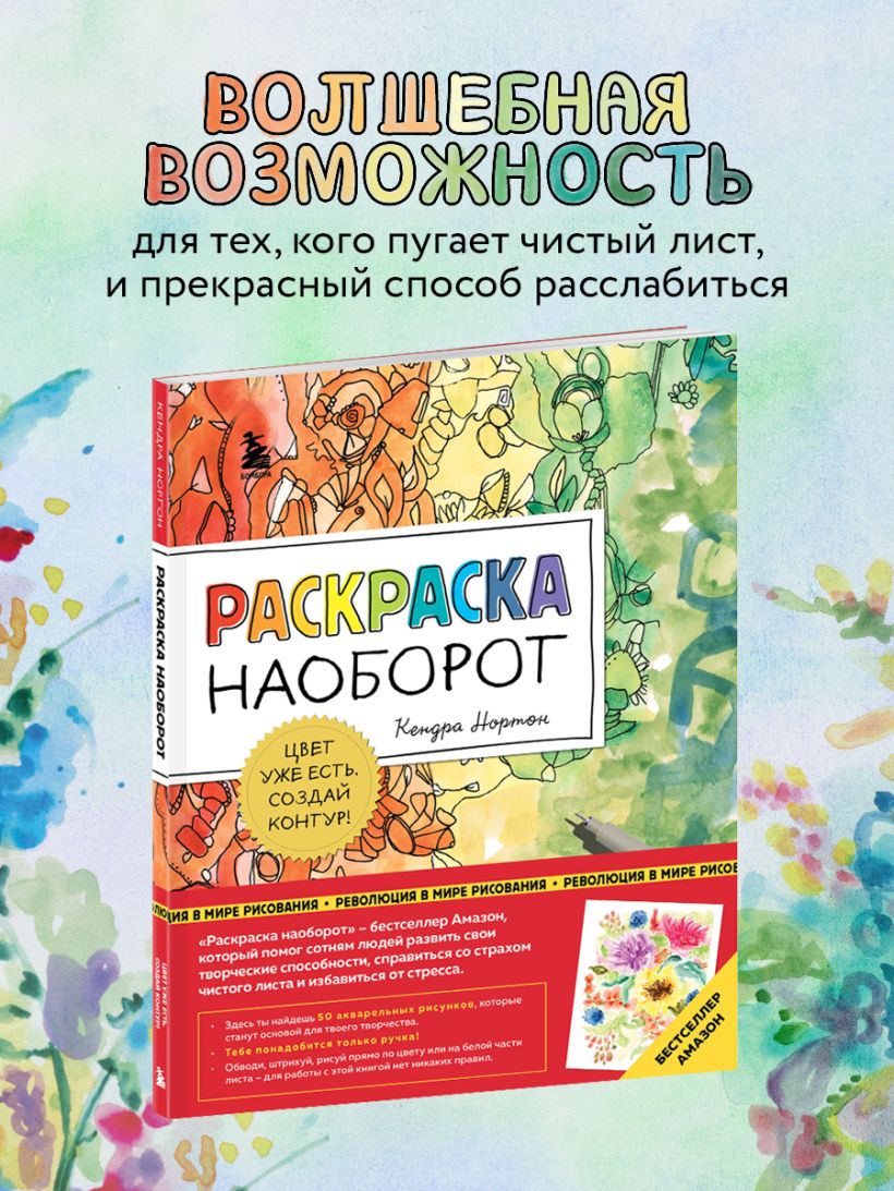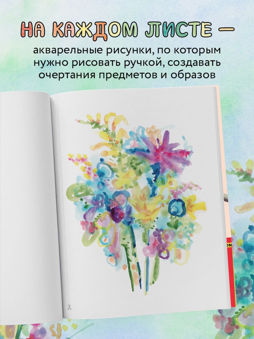 Если ты думаешь, что не умеешь рисовать, или тебя пугает чистый лист, эта книга для тебя! Здесь ты найдешь 50 незаконченных акварельных картин, которые станут основой для твоего творчества. Возьми ручку или перо, внимательно посмотри на причудливый рисунок и создай очертания предметов и образов, которые разглядишь в акварельных пятнах. Обводи, штрихуй, рисуй прямо по цвету или на белой части листа — для работы с этой книгой нет никаких правил!