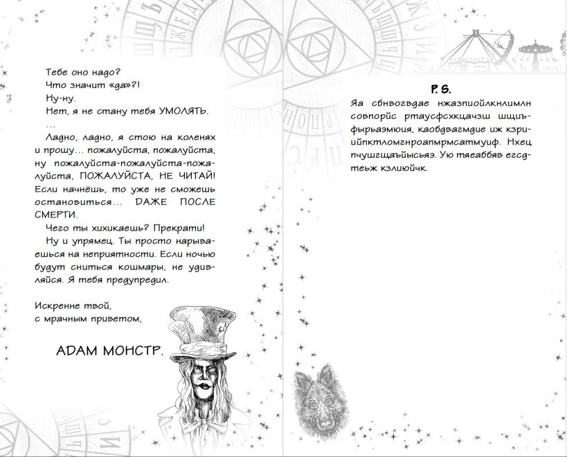 В книге много шифров, которые читатель должен разгадывать в процессе чтения.