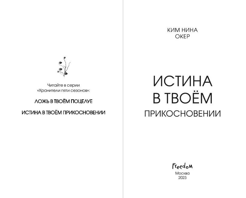 «Истина в твоём прикосновении» Ким Нина Окер — продолжение романтического фэнтези «Ложь в твоём поцелуе»! Нежная история любви, рассказывающая о двух временах года, борьбе и противостоянии, магии тьмы и света.