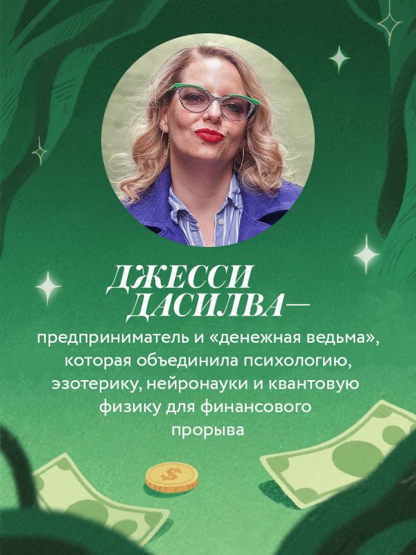 Деньги — это чистая магия! К одним они сами плывут в руки, а других, будто по вине злого рока, обходят стороной. Так размышляла Джесси ДаСилва после того, как ее внезапно уволили с высокооплачиваемой работы. Не теряя оптимизма, она углубилась в исследование духовных практик по привлечению богатства. Это перевернуло ее жизнь на 180 градусов, помогло стать предпринимателем и попасть в список Forbes. Причем не просто предпринимателем, а, по выражению редакции журнала, «денежной ведьмой нового тысячелетия».