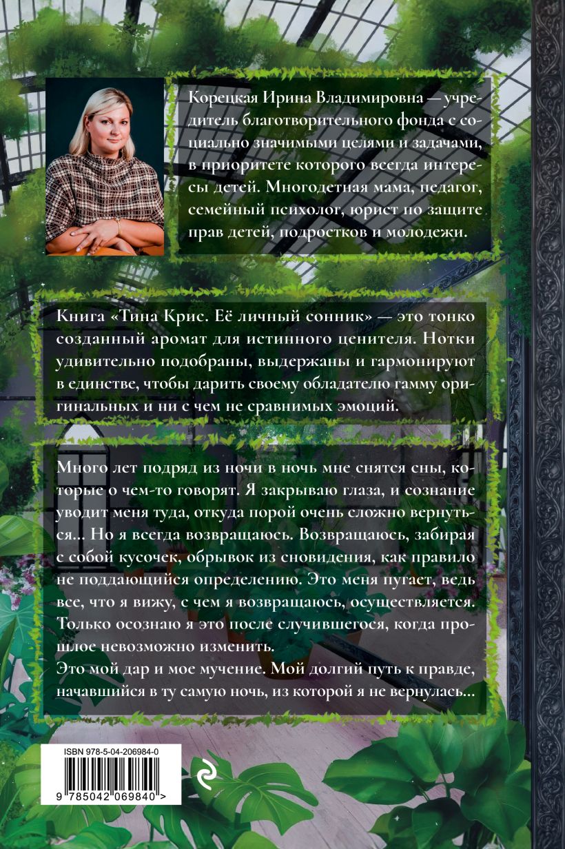 Книга «Тина Крис. Её личный сонник» — это тонко созданный аромат для истинного ценителя. Нотки удивительно подобраны, выдержаны и гармонируют в единстве, чтобы дарить своему обладателю гамму оригинальных и ни с чем несравнимых эмоций.