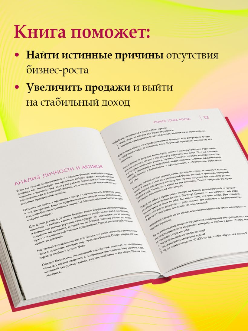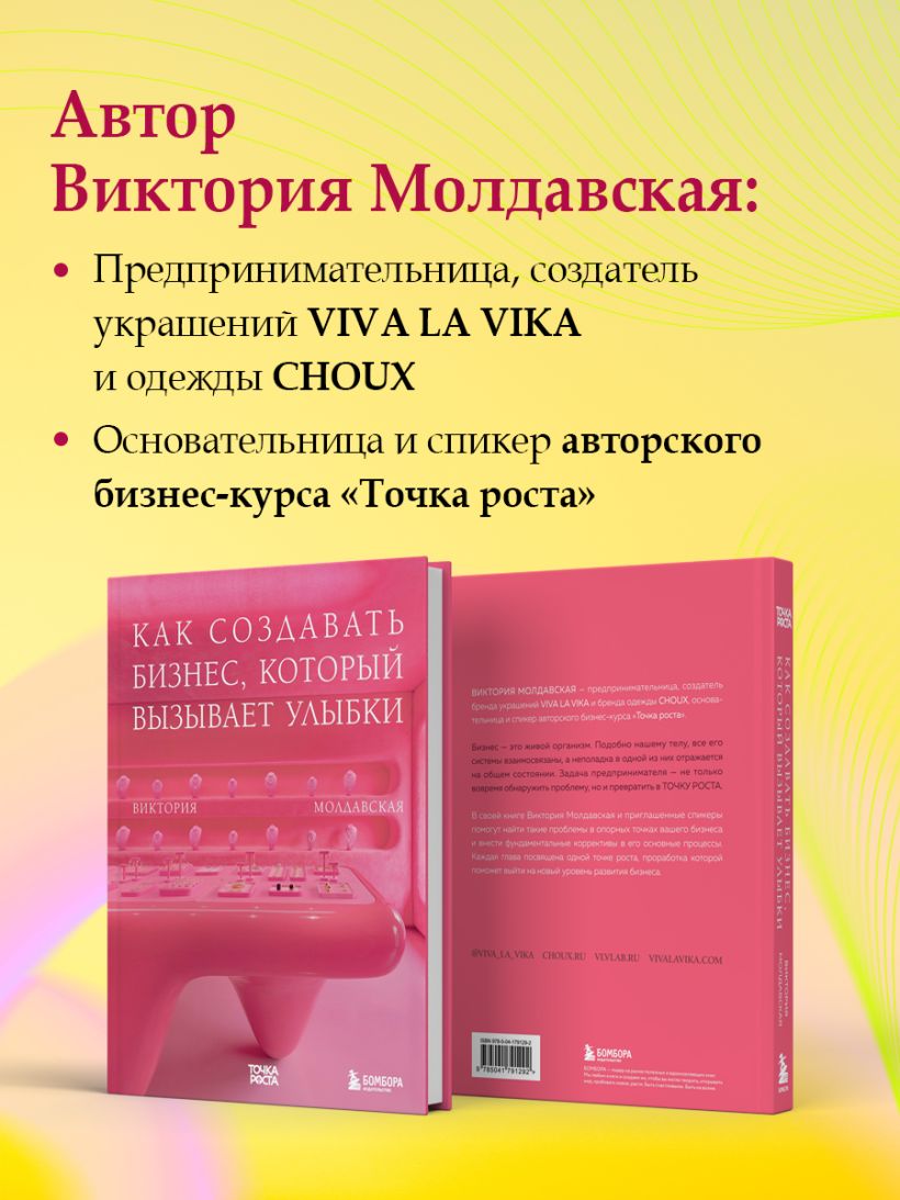В своей книге Виктория Молдавская и приглашенные спикеры помогут найти проблемы в опорных точках вашего бизнеса и внести фундаментальные коррективы в его основные процессы. Каждая глава посвящена одной точке роста, проработка которой поможет выйти на новый уровень развития бизнеса.