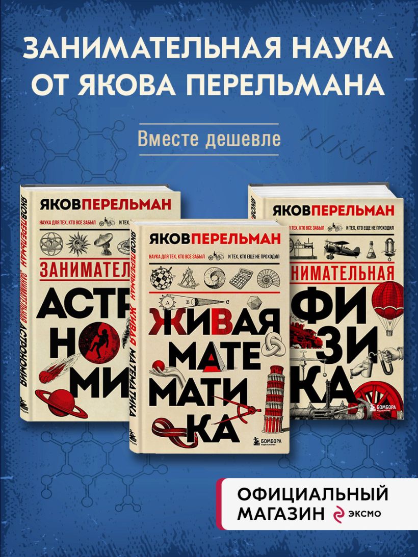 Откройте дверь в мир науки вместе с книгами Якова Перельмана: «Живая математика», «Занимательная астрономия» и «Занимательная физика».