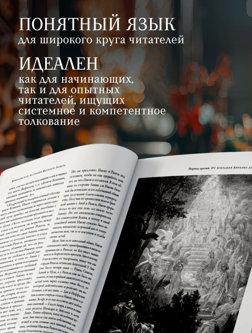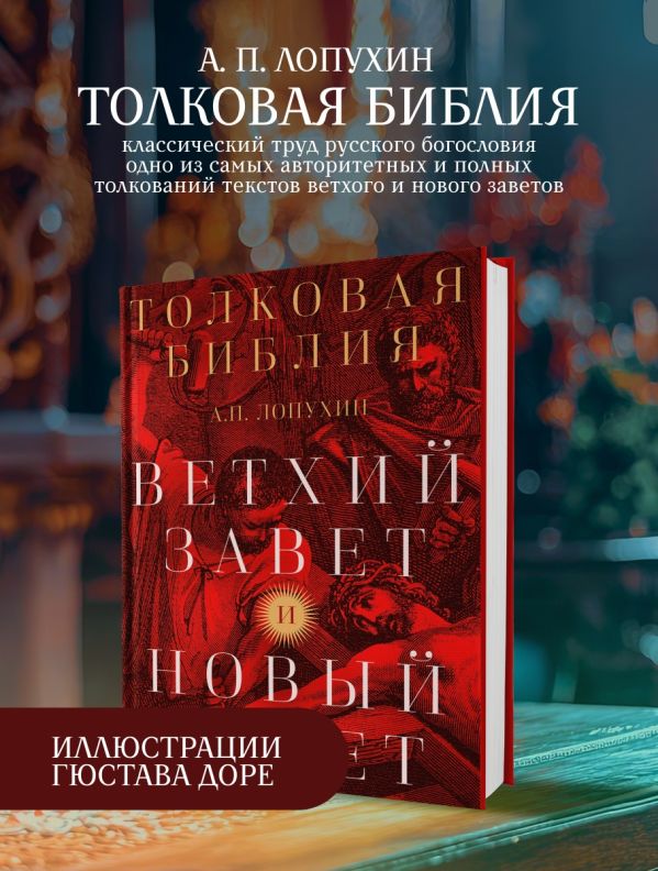 Книга подготовлена на основе классического труда выдающегося русского библеиста, богослова, профессора Санкт-Петербургской Духовной академии Александра Павловича Лопухина. В своей монументальной работе, выдержавшей до 1917 года 20 переизданий, он собрал и проанализировал весь библейско-хронологический, археологический, исторический и этнографический материал, доступный к концу XIX века. Его комментарии к книгам Священного Писания Ветхого и Нового Заветов являются наиболее авторитетным, компетентным и детальным толкованием Библии. Это замечательный образец популяризации богословской науки, способствующий духовному воспитанию и просвещению людей. Написанная вполне доступным языком, Толковая Библия А.П. Лопухина предназначена самому широкому кругу читателей — всем, кто задумывается о своем нравственном воспитании и духовном предназначении. В издании использованы иллюстрации знаменитого французского художника Луи Огюста Гюстава Доре.