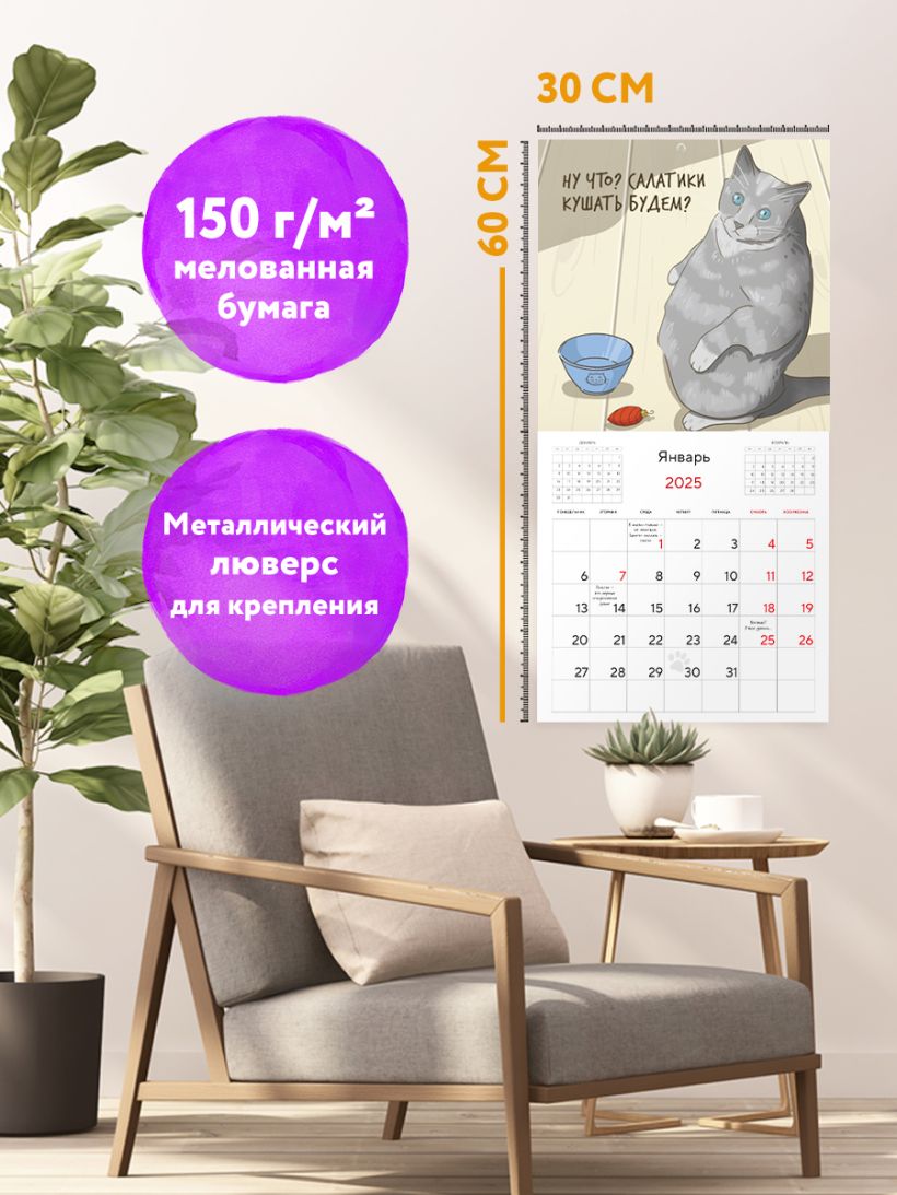 Толстый кот - счастливый год! Календарь на 2025 год для мурчунов и ворчунов