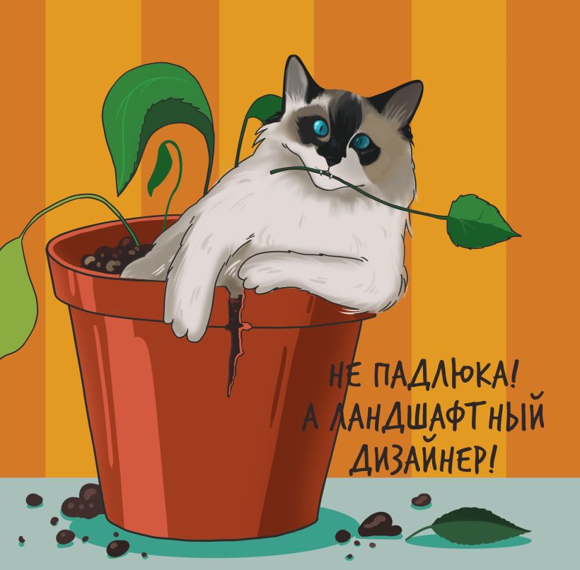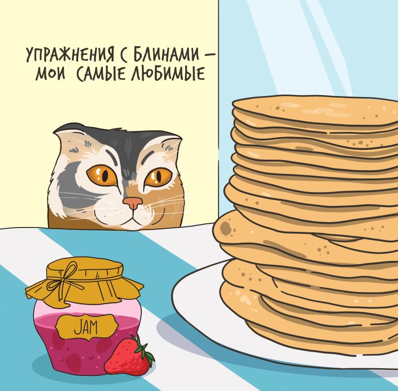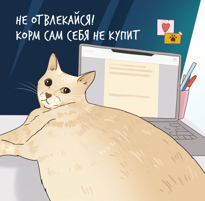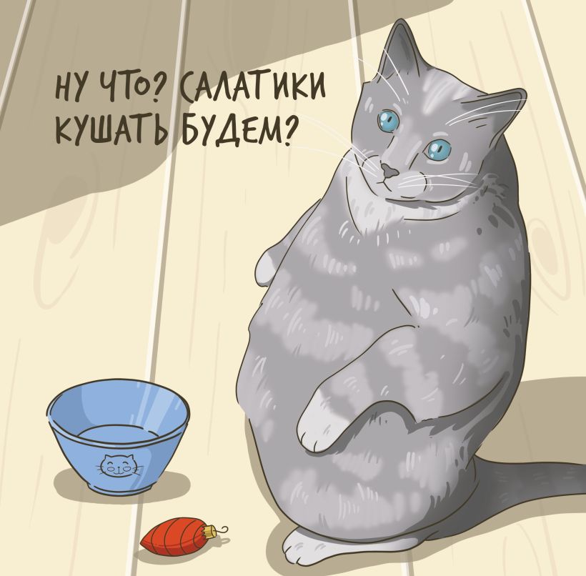 Календарь с авторскими иллюстрациями толстых и смешных котиков, которые роняют елку, не дают спать ночью и постоянно выпрашивают еду.