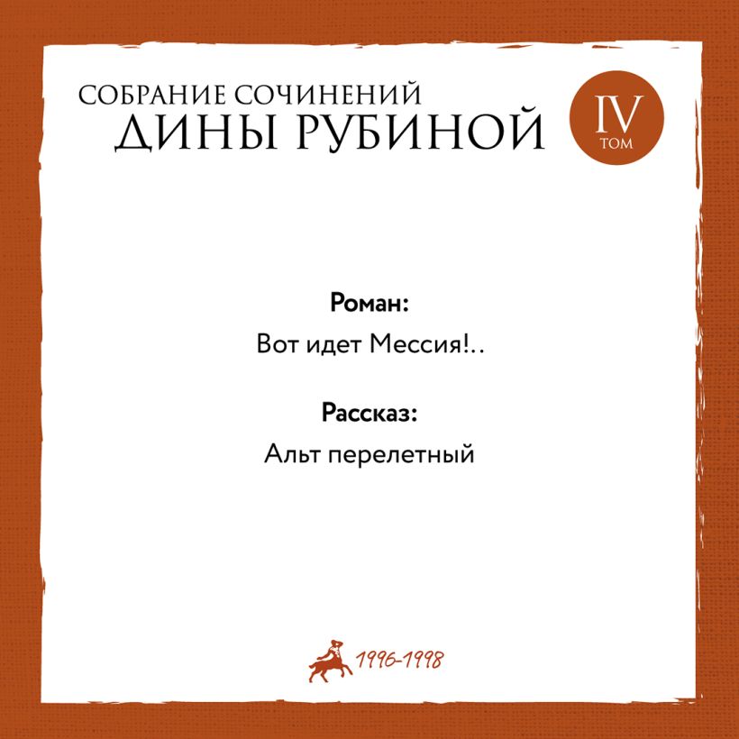 В четвертый том вошла проза, написанная Рубиной с 1996 по 1998 годы: