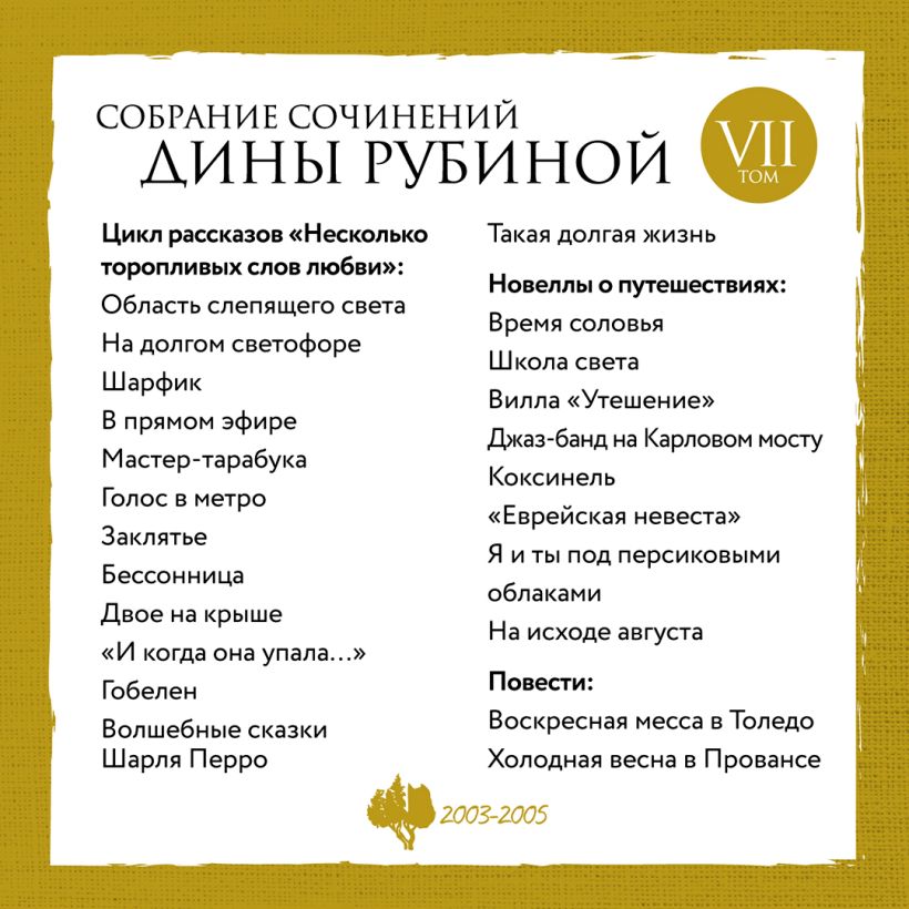В седьмой том вошла проза, написанная Рубиной с 2003 по 2005 года: