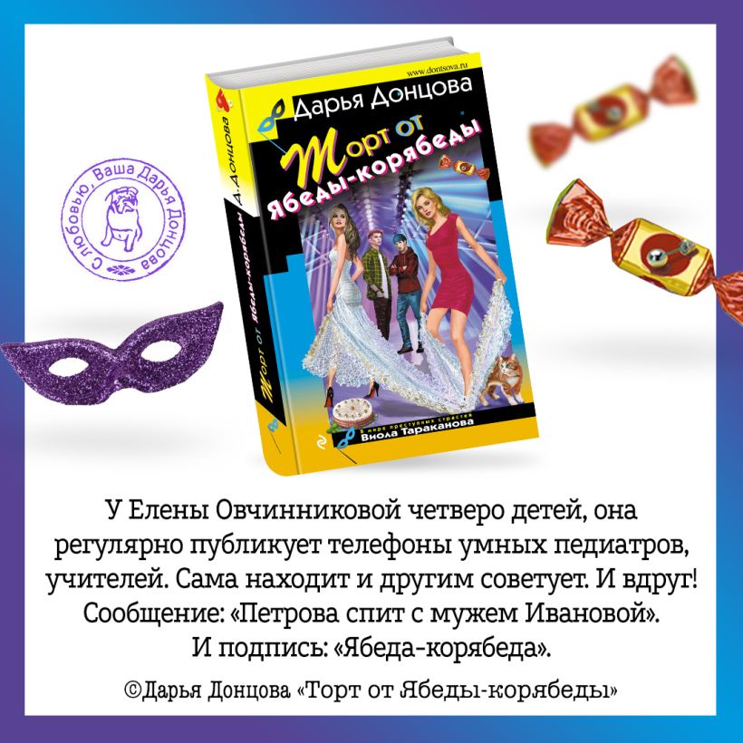 Если любишь человека, то люби и его личных тараканов. Даша Васильева давно живет по этому правилу, а вот жена полковника Дегтярева Марина — нет. В этот раз он зашел слишком далеко: своими капризами сильно обидел свою вторую половину. Даша попыталась помирить пару, но этому помешала новая клиентка детективного агентства Людмила Косина. Она попросила подтвердить свои подозрения в отношении убийцы ее сестры Надежды Бовари. Врачи заявили, что женщина умерла от инсульта. Однако нанятый Косиной суперэксперт обнаружил, что Бовари была отравлена ядом экзотической гусеницы. И вот этот же яд был обнаружен в креме, который накануне подарила покойной… первая жена Надиного мужа Ольга! Плевое дело, преступник почти найден. Сыщики с энтузиазмом взялись за работу. Тем сильнее был шок, когда они поняли, что все время шли по ложному следу! Дарья Донцова — самый популярный и востребованный автор в нашей стране, любимица миллионов читателей. В России продано более 200 миллионов экземпляров ее книг. Ее творчество наполняет сердца и души светом, оптимизмом, радостью, уверенностью в завтрашнем дне! «Донцова невероятная работяга! Я не знаю ни одного другого писателя, который столько работал бы. Я отношусь к ней с уважением, как к образцу писательского трудолюбия. Женщины нуждаются в психологической поддержке и получают ее от Донцовой. Я и сама в свое время прочла несколько романов Донцовой. Ее читают очень разные люди. И очень занятые бизнес-леди, чтобы на время выключить голову, и домохозяйки, у которых есть перерыв 15—20 минут между отвести-забрать детей». — Галина Юзефович, литературный критик