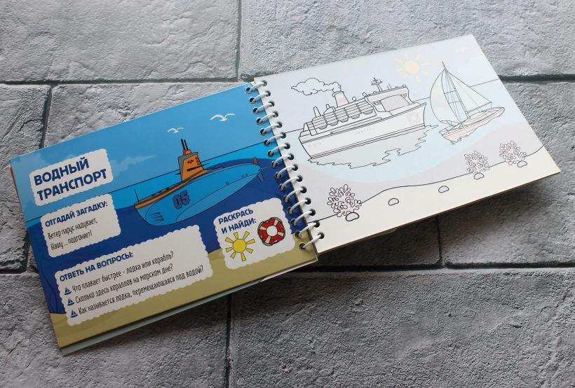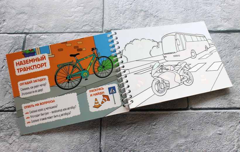 Представляем новое поколение раскрасок! Во-первых, вам больше не нужны цветные карандаши или фломастеры. Просто наполните специальный фломастер, входящий в комплект, водой и проведите им по страницам — они сразу же станут цветными. Поэтому раскраской смогут пользоваться даже самые маленькие дети, только начинающие держать ручку. Во-вторых, эта раскраска многоразовая. После высыхания страницы из прочного картона снова станут чёрно-белыми, и их можно раскрашивать повторно. В-третьих, эта раскраска развивающая: на каждом развороте есть задания на внимание и мышление, стихотворные загадки и даже скрытые предметы, появляющиеся из ниоткуда! Раскрашивая реалистичные иллюстрации, ваш малыш с интересом познакомится с разными видами транспорта.