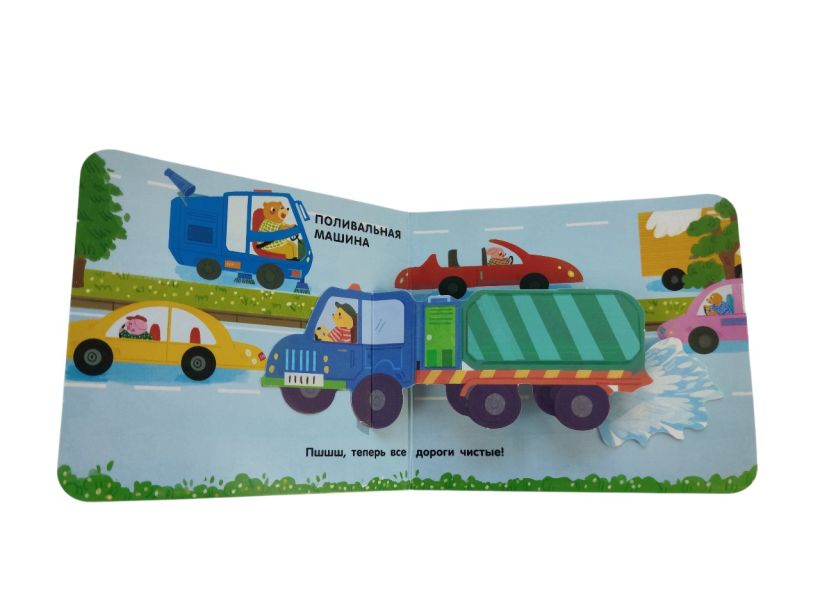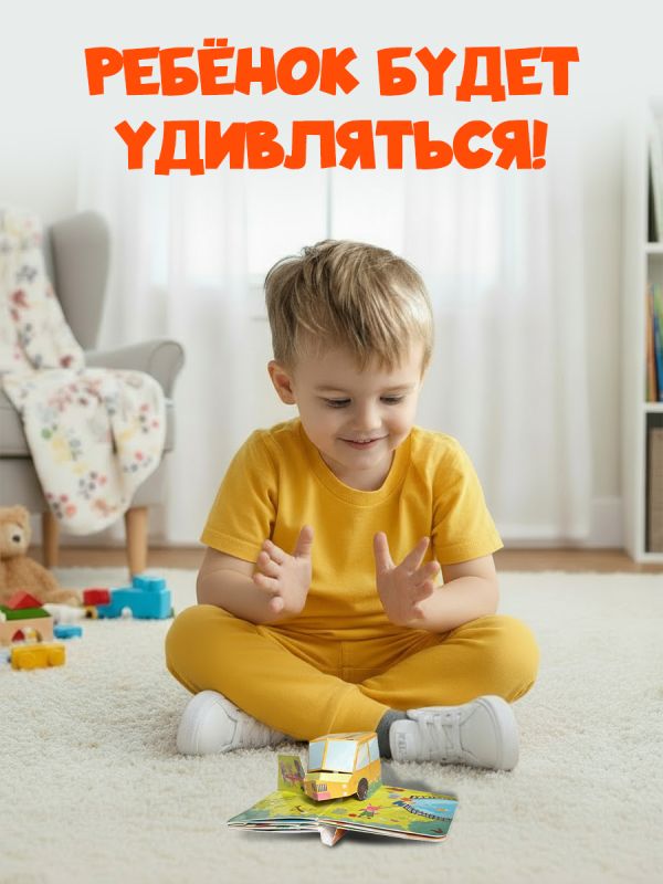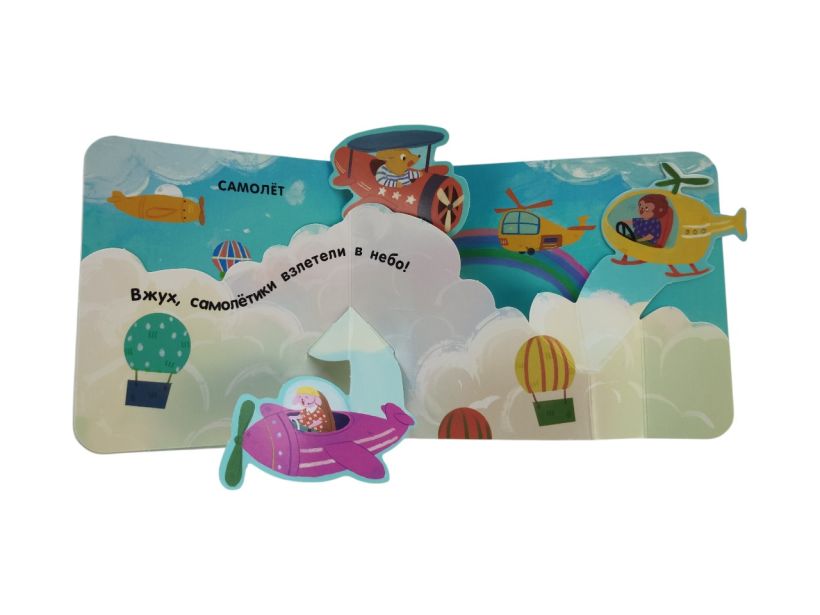 На каждой странице тебя ждут объёмные элементы и pop-up панорамки. Играй с подвижными деталями и развивай мелкую моторику! А ещё узнай интересные факты про транспорт в интерактивной книжке для самых маленьких.
