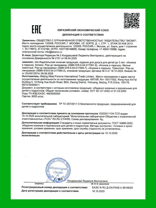 Ваш малыш сможет дополнить свои знания об окружающем мире в других книгах серии: «Книжка в ладошку. Космос. Pop-up панорамка», «Книжка в ладошку. Карусели. Pop-up панорамка», «Книжка в ладошку. Милые животные. Pop-up панорамка», «Книжка в ладошку. Весёлые животные. Pop-up панорамка».