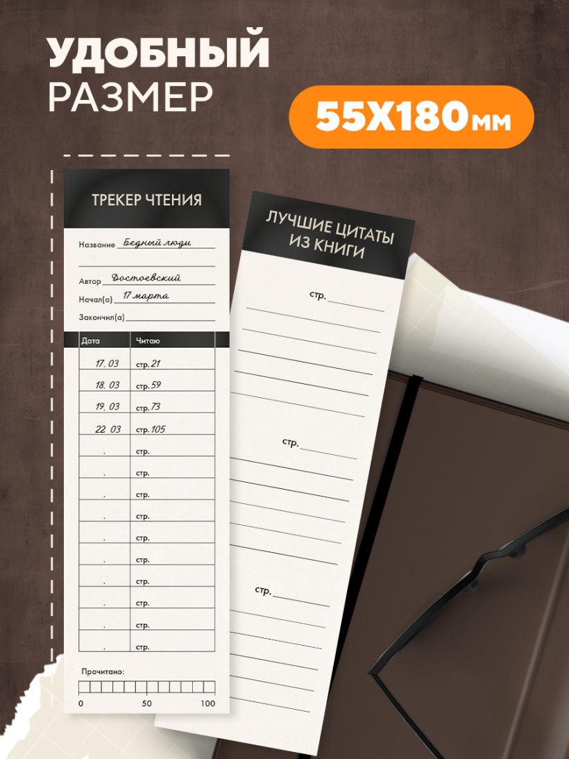Набор закладок в виде трекера чтения создан для тех, кто ценит комфорт и любит окружать себя прекрасными вещами. Отмечайте свой прогресс в чтении книг, выписывайте цитаты и наслаждайтесь новой книгой вместе с трекером!