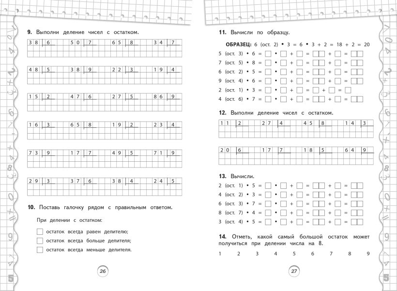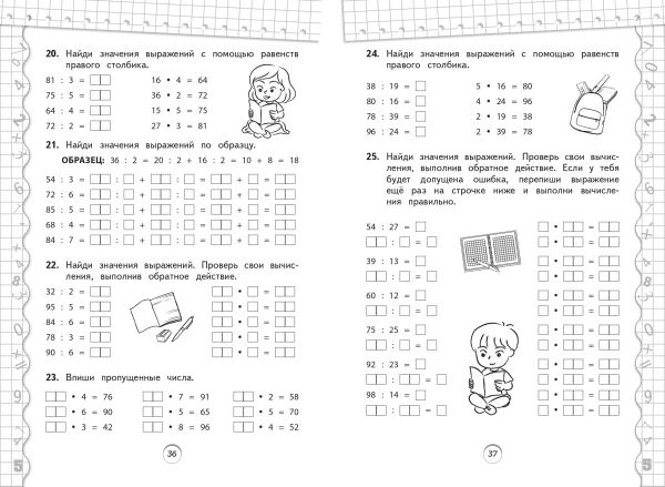 Пособие, соответствующее ФГОС, станет отличным помощником для учеников 3-го класса в отработке умений и навыков, полученных на уроках математики. Занимаясь 15—20 минут в день, учащиеся смогут закрепить навыки решения примеров в пределах в пределах 1000, умножения и деления, деления с остатком; познакомятся с долями, научатся понимать и принимать учебную задачу, анализировать информацию. Пособие поможет родителям и педагогам организовать эффективную пошаговую подготовку школьника.