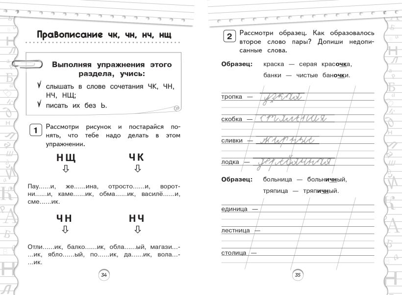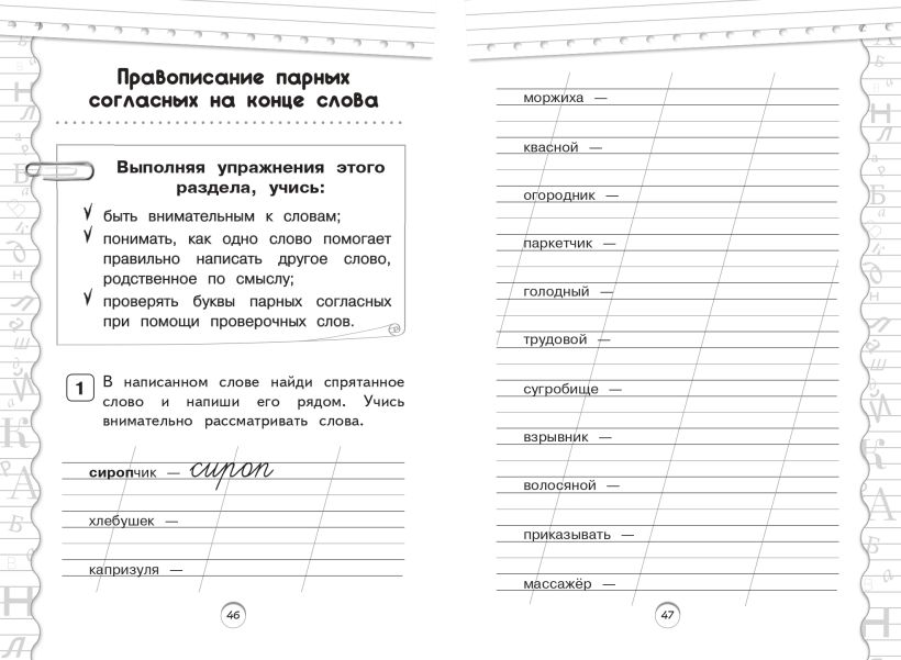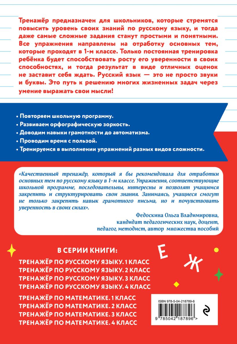 Тренажёр по русскому языку, соответствующий ФГОС для начальной школы, поможет развить у школьников навыки грамотного письма. Выполняя задания, ребёнок повторит мягкие и твёрдые согласные, научится правильно делить слова на слоги, отработает основные темы школьной программы: правописание ЖИ-ШИ, ЧА-ЩА, ЧУ-ЩУ, ЧК, ЧН, НЧ, НЩ, парных согласных в конце слова, имён собственных, предлогов. Книга адресована, педагогам и родителям, которые хотят помочь своему ребёнку глубже изучить учебный материал, закрепить полученные навыки или восполнить определённые пробелы в знаниях. Тренажёр можно использовать как для домашних занятий, так и для коллективной и индивидуальной работы в классе.