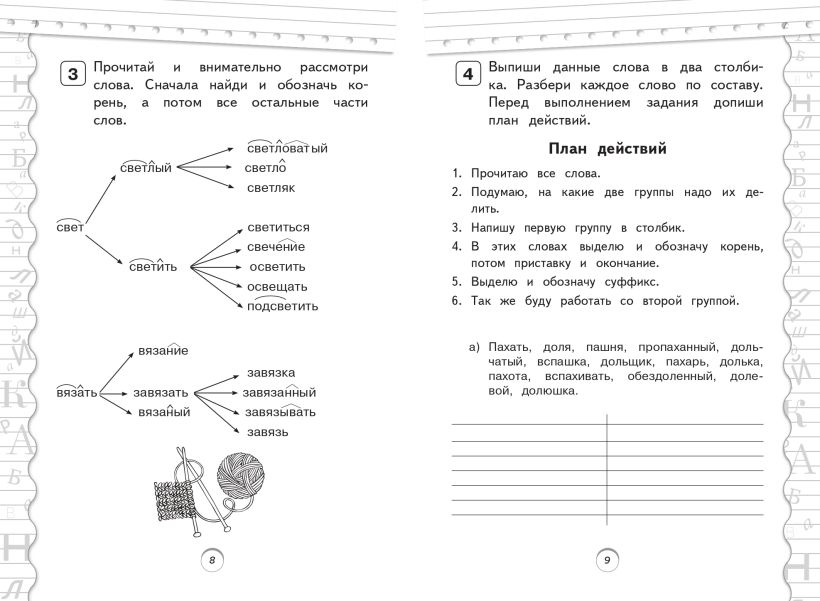 Пособие по русскому языку от издательства «Эксмо» подготовлено в соответствии с требованиями ФГОС для начальной школы и может быть использовано с любым из действующих учебников для 2 класса. Удобный тренажер с интересным современным макетом поможет ребенку улучшить грамотность, восполнить пробелы, углубить и систематизировать знания. Занимаясь, школьник не только повторит правописание безударной гласной в корне, безударных окончаний существительных и прилагательных женского и среднего рода, правила чередования согласных в корне, закрепит знания о разделительном Ъ и Ь, потренируется выделять приставку, корень и суффикс в слове, но и научится работать по плану, то есть выполнять определенный алгоритм действий, который поможет ему осознанно применять правила. Когда навык грамотного письма будет доведен до автоматизма, результат в виде твердых знаний и отличных оценок не заставит себя ждать.