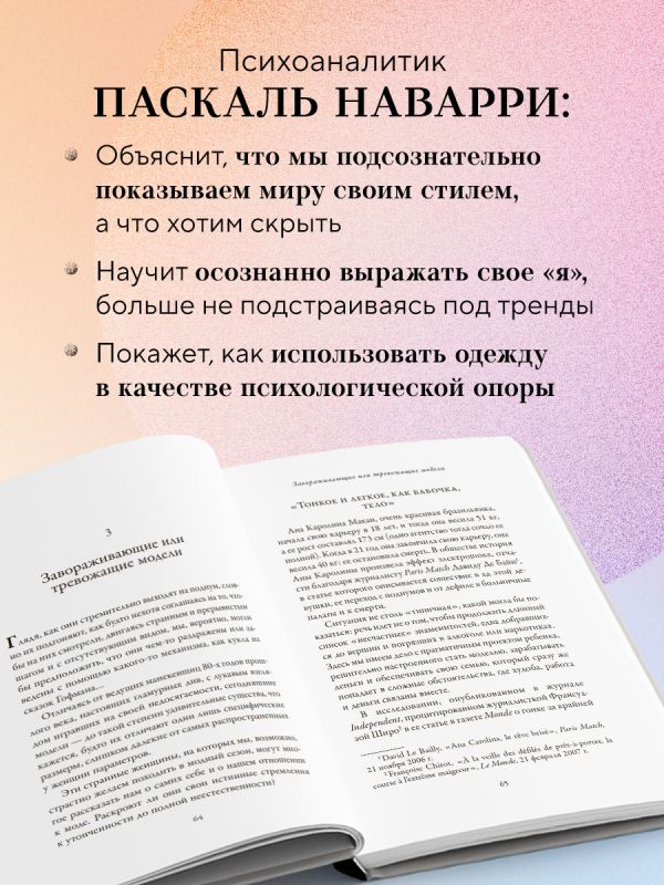 Наше подсознание умеет говорить на языке моды. Выбирая одежду, мы выбираем нового себя. А наш облик — не просто следование трендам, это попытка найти внутреннюю опору. Практикующий психоаналитик Паскаль Наварри объясняет, какие психологические механизмы отвечают за наш внешний вид: что мы хотим показать при помощи одежды, а что стремимся скрыть.