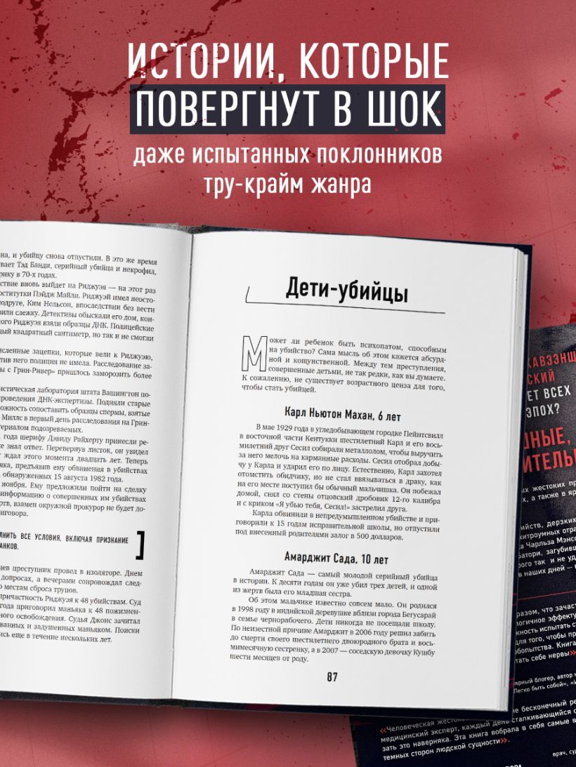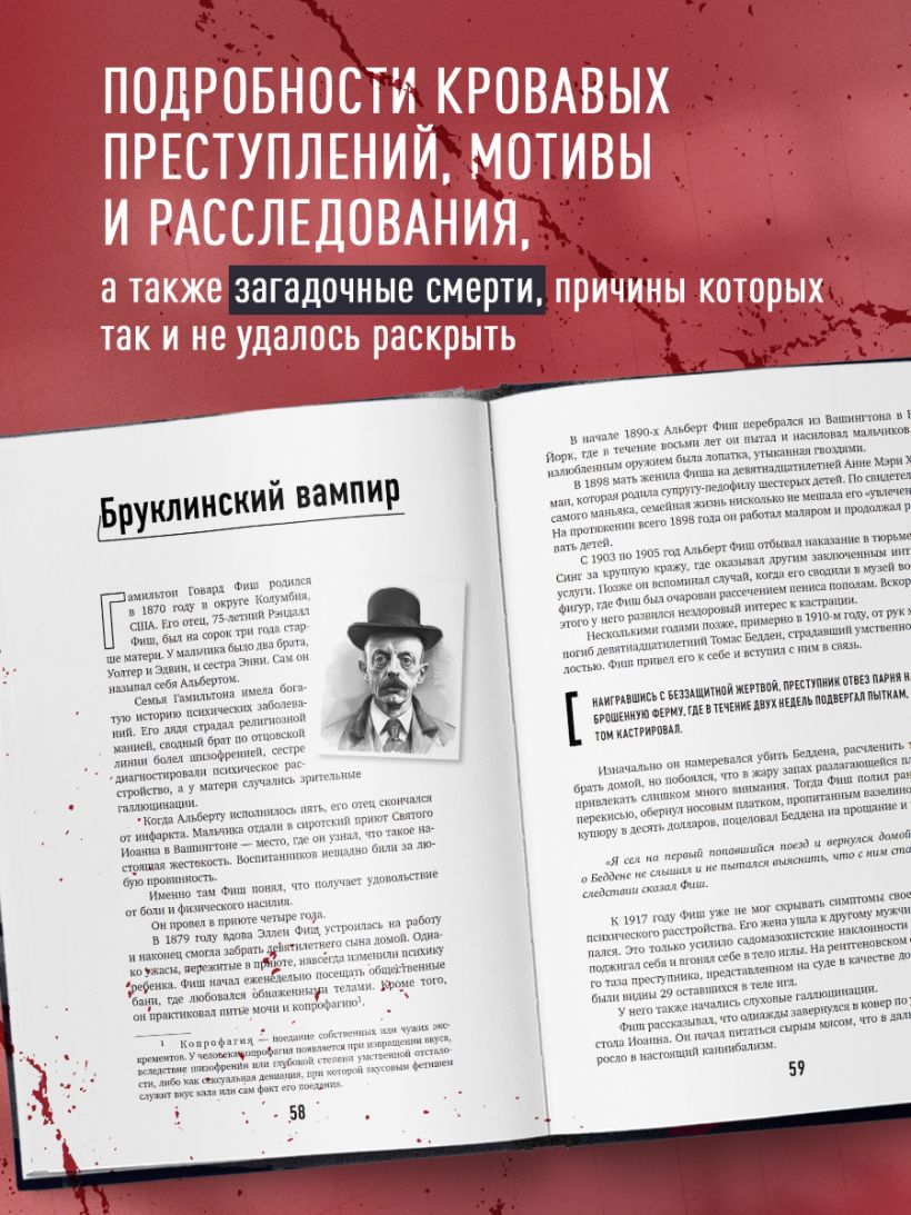 Вам кажется, что все это чья-то изощренная выдумка? К сожалению, нет. Все это не больные фантазии, а детали реальных злодеяний, описанных в этой книге. Здесь вы найдете еще больше шокирующих подробностей, описанных во всех красках. «Хронология зла. Коллекция самых жутких преступлений, которые только можно себе представить» — настоящая энциклопедия зла, которая покажет вам, с какой звериной жестокостью может совершать свои преступления человек.
