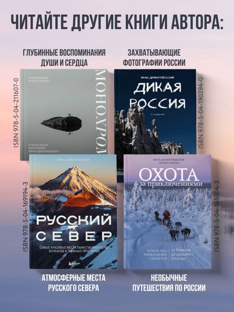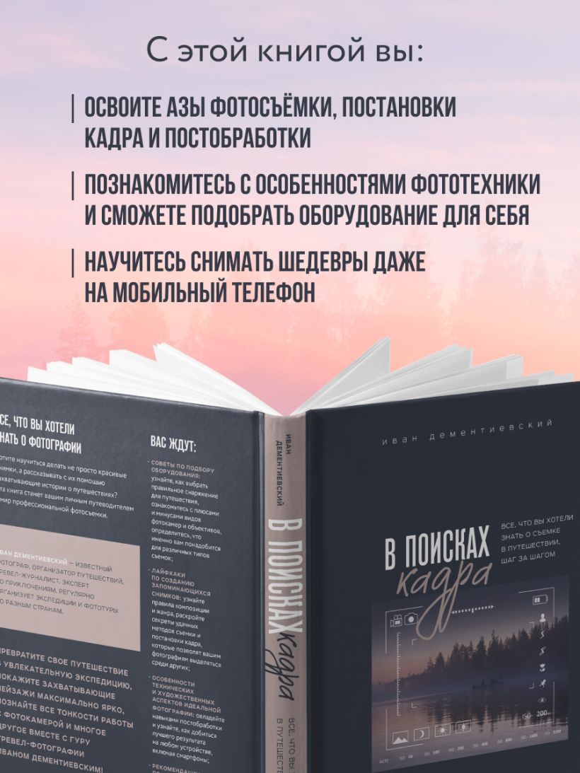 Хотите научиться делать не просто красивые снимки, а рассказывать с их помощью захватывающие истории о путешествиях? Эта книга для вас! Иван Дементиевский, настоящий гуру и признанный эксперт тревел-фотографии, станет вашим проводником в мир профессиональной съемки и незабываемых фотоисторий.