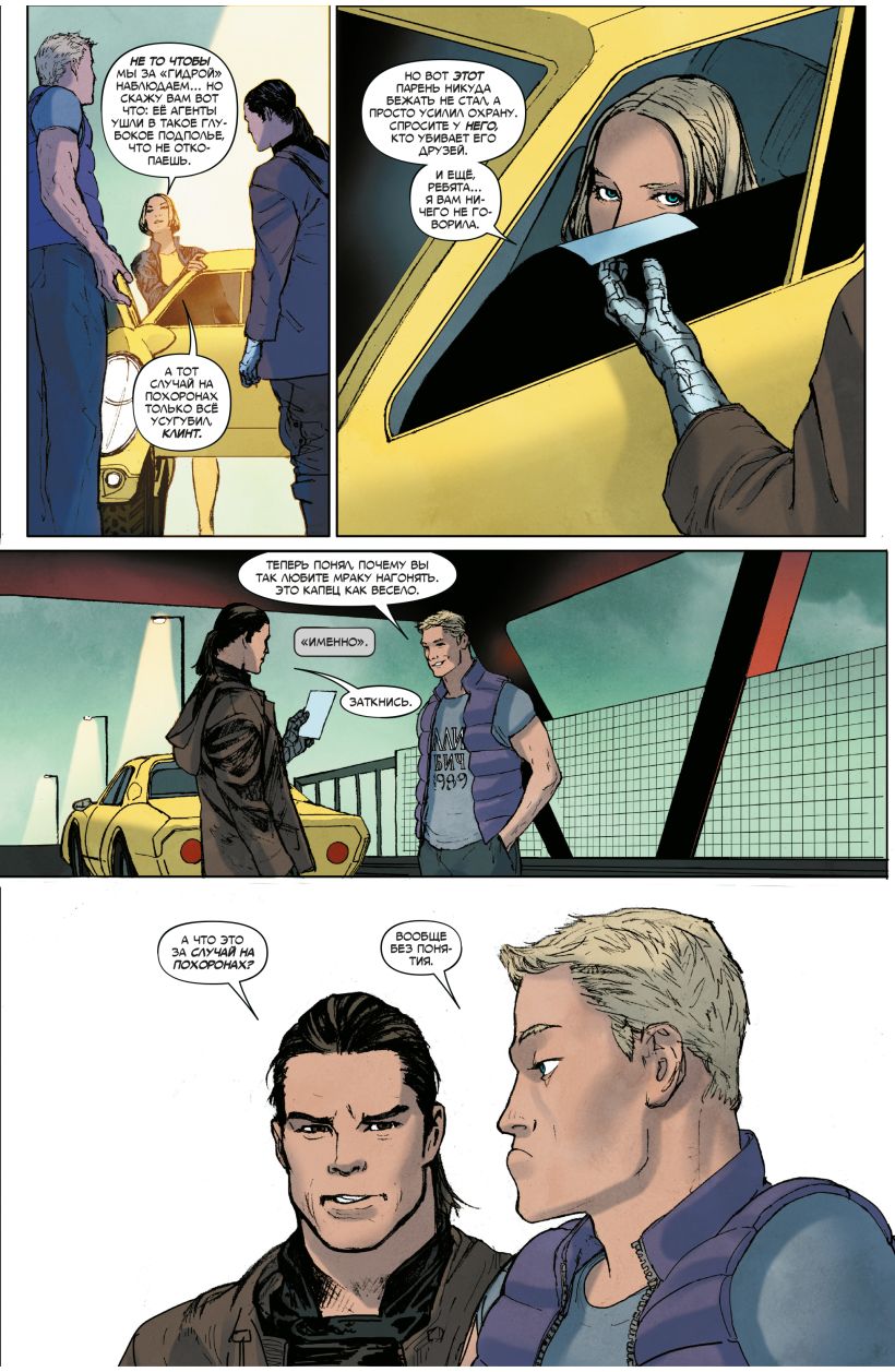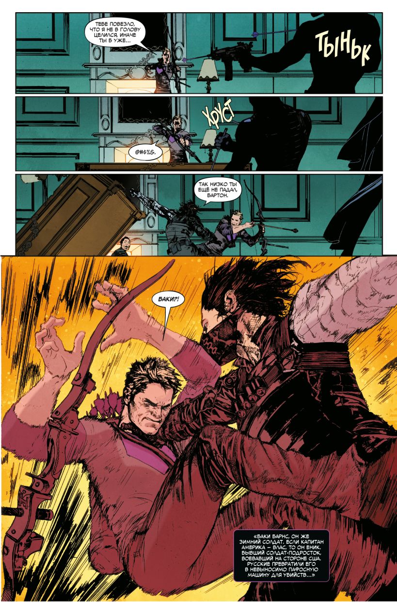 На страницах этого комикса вас ждёт лихой шпионский боевик, полный перестрелок и шуток! Ведь в деле серьёзный парень Баки и весельчак Клинт. Они абсолютно разные, но у них есть одна общая черта: оба отлично умеют убивать. Смогут ли остатки "Гидры", только что потерпевшие сокрушительное поражение, выдержать под натиском бывших возлюбленных Наташи Романовой? Смогут ли Зимний Солдат и Хоукай узнать, погибла ли Чёрная вдова на самом деле? И так ли сильно на самом деле они хотят знать правду…