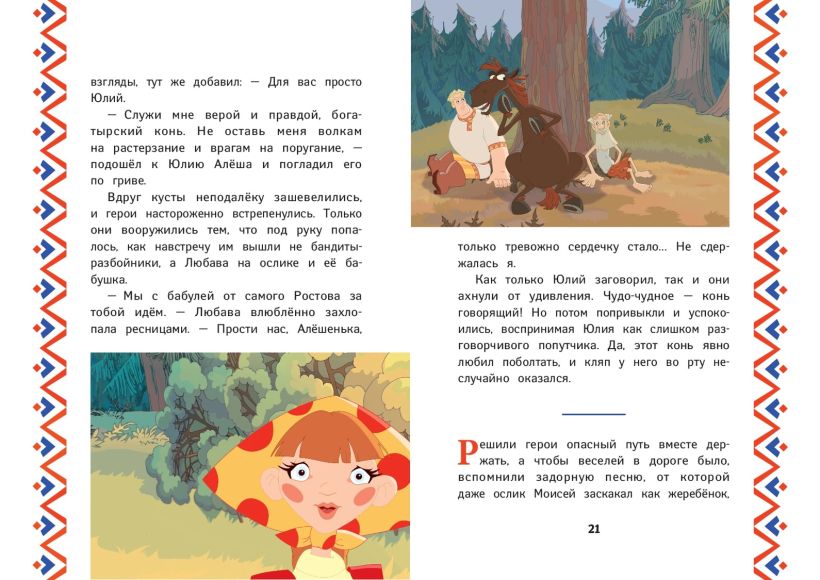 Эта книга придётся по душе всем любителям популярного мультфильма «Алёша Попович и Тугарин змей», созданного анимационной студией «Мельница». История, так полюбившаяся детям и взрослым благодаря захватывающему сюжету и юмору, вновь оживёт на этих ярких страницах!