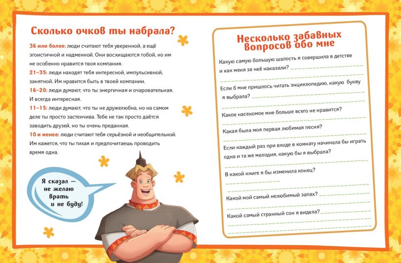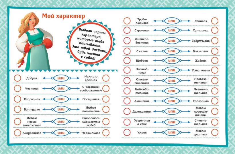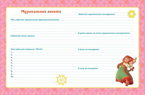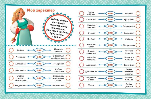Если ты, как Аленушка, любишь записывать и описывать все важные события, которые произошли в твоей жизни, то эта книга точно для тебя! Ведь это не просто блокнот, это настоящий альбом для творчества, который поднимет тебе настроение и поможет воплотить все твои мечты и планы. Здесь ты найдешь анкеты для друзей, раскраски, игры, планеры и множество интересных активностей — все, что нужно креативной девчонке! А еще на страницах дневничка тебя ждут герои веселых мультфильмов о Трех богатырях. Скучать точно не придется!