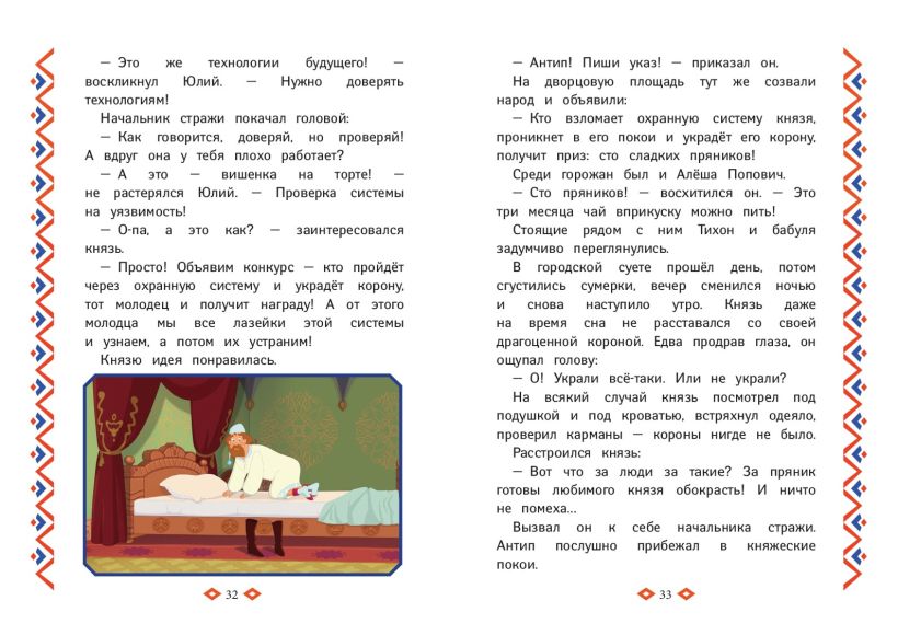 Забеспокоился князь киевский о своей безопасности и поручил Юлию охранную систему во дворце установить. А чтобы её проверить, объявил конкурс: кто корону княжескую сможет украсть, тот мешок пряников получит. Ну и похитили корону — вот только обратно не вернули! Поручает Алёше князь расследование провести и венец государев отыскать.