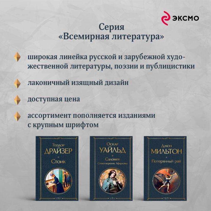 Сборник «Потусторонние истории» Эдит Уортон представляет собой изящную и мастерски составленную коллекцию из пятнадцати рассказов Эдит Уортон, в которых жанр классических историй о призраках переплетается с глубоким психологизмом и социальным подтекстом. Эти рассказы погружают читателя в атмосферу необъяснимой тревоги, мистики и напряжённого ожидания, где призраки часто становятся метафорой моральных конфликтов, подавленности и душевных терзаний. Действие происходит в мрачных особняках и отдалённых усадьбах, а главными героями чаще всего оказываются женщины, сталкивающиеся с ограничениями своего времени и собственного положения. Их внутренние страхи, боль и одиночество преобразуются в непостижимые сверхъестественные явления. Стиль Уортон характеризуется тонкой психологической проработкой персонажей, насыщенностью описаний и тщательным построением сюжета, что делает рассказы одновременно элегантными и глубоко тревожащими. Этот сборник — не просто классика ужасов, а проникновенное исследование человеческой души, скрывающейся за маской внешнего благополучия. «Потусторонние истории» — книга для тех, кто ценит не только атмосферу сверхъестественного, но и художественную силу слова, раскрывающего неизведанные глубины человеческого страха и чувства вины. Эдит Уортон — автор более двадцати романов и десяти сборников рассказов — первая женщина-писательница, удостоенная Пулитцеровской премии в 1921 году. Такие произведения Уортон, как «Обитель радости», «Итан Фром», «Эпоха невинности», «Плод дерева», вошли в «золотой фонд» американской литературы. Капсульная коллекция внутри серии «Элегантная классика»! Любовь многогранна, может вознести, а может разбить сердце. Любовь может идти рука об руку с притягательной тьмой, манящей в потусторонние миры. Поэтому в привычный макет серии мы добавили темные краски, убийственно красивые цветы, а также животных-проводников. Капсулу объединяет общая тематика мистического и картинка на корешке, внутри макет с иллюстрациями.