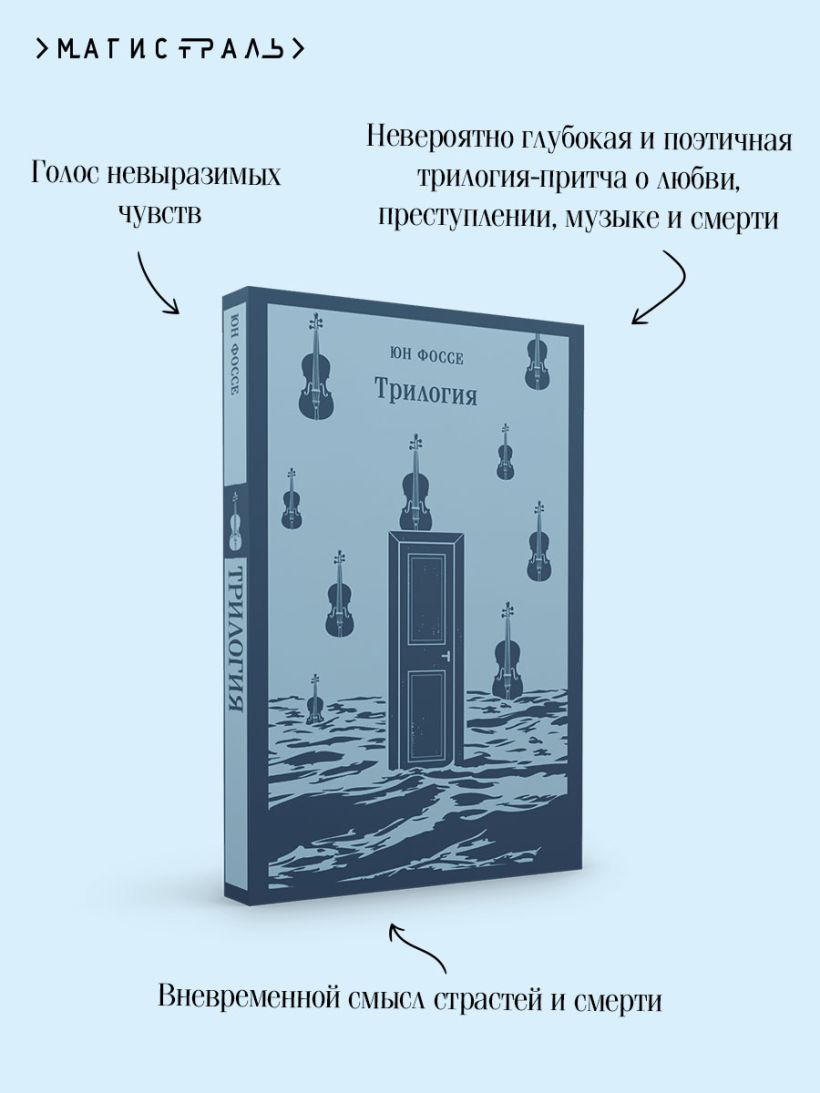 Невероятно глубокая и поэтичная трилогия-притча о любви, преступлении, музыке и смерти. «Трилогия» состоит из трех повестей, которые считаются едва ли не самыми важными произведениями Фоссе — «Без сна», «Сны Улава» и «Вечерняя вязь».