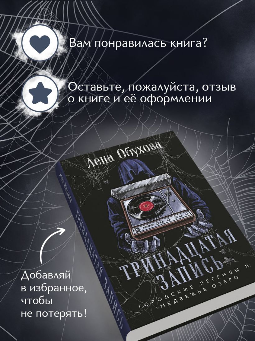 «Тринадцатая запись» — новинка популярной российской писательницы Лены Обуховой, вошедшая в мистический цикл «Городские легенды 2. Медвежье озеро».