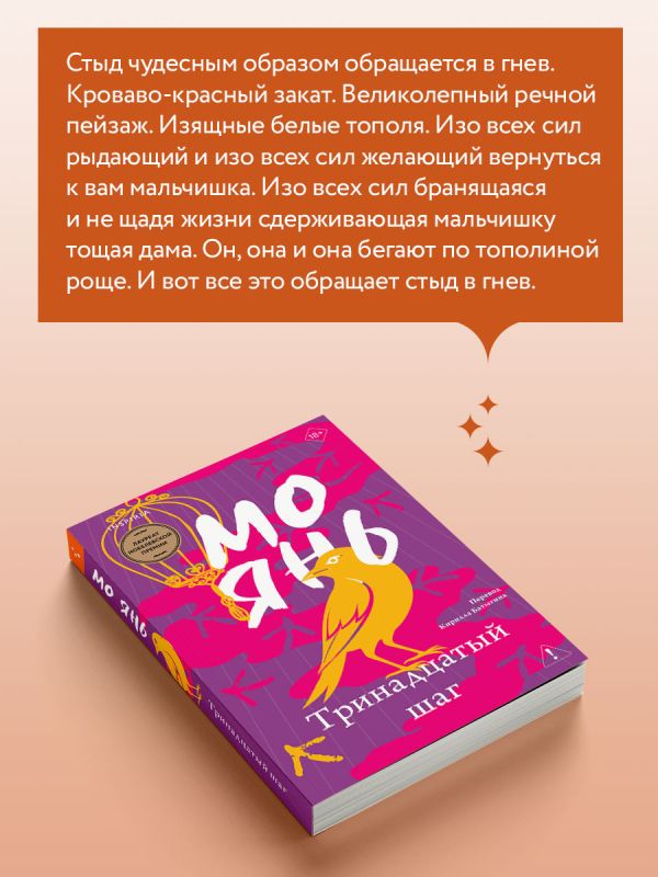 «Роман "Тринадцатый шаг" — это модернистская ловушка. Мо Янь ломает хронологию и играет с читателем, убивая, воскрешая и подменяя героев. Он перемещает нас из пространства художественного в мир земной, причем настолько правдоподобный, что грань между дурным сном и банальной жестокостью реальности исчезает. Вы слышали такие истории от знакомых, читали о них в таблоидах — думали, что писатели додумали всё до абсурда. На деле они лишь пересказывают едва ли не самые банальные из этих рассказов. Мо Янь разбивает розовые очки и показывает мир таким, каков он есть, — без надежды на счастливый финал. Но если дойти до конца, ты выходишь в мир, где знаешь, кто ты есть и кем тебе позволено быть». — Алексей Чигадаев, китаист, переводчик, автор телеграм-канала о современной азиатской литературе «Китайский городовой»