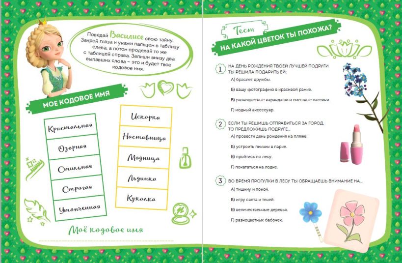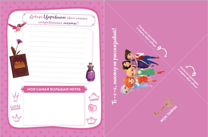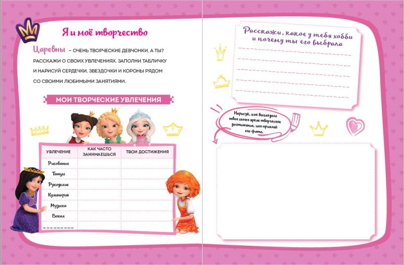 На страницах скетчбука тебя ждут планеры, советы от Царевен, интересные тесты, анкеты для друзей, места для записи секретиков и множество страниц для творчества.