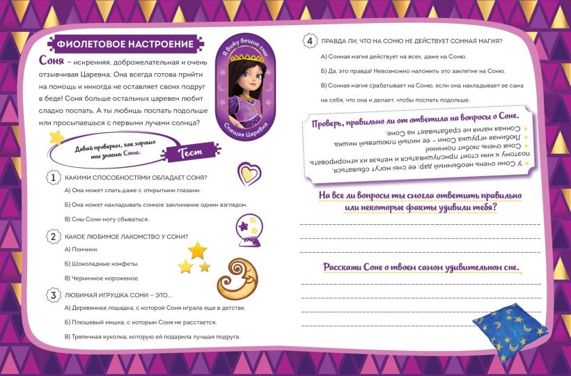 На страницах скетчбука тебя ждут планеры, советы от Царевен, интересные тесты, анкеты для друзей, места для записи секретиков и множество страниц для творчества.