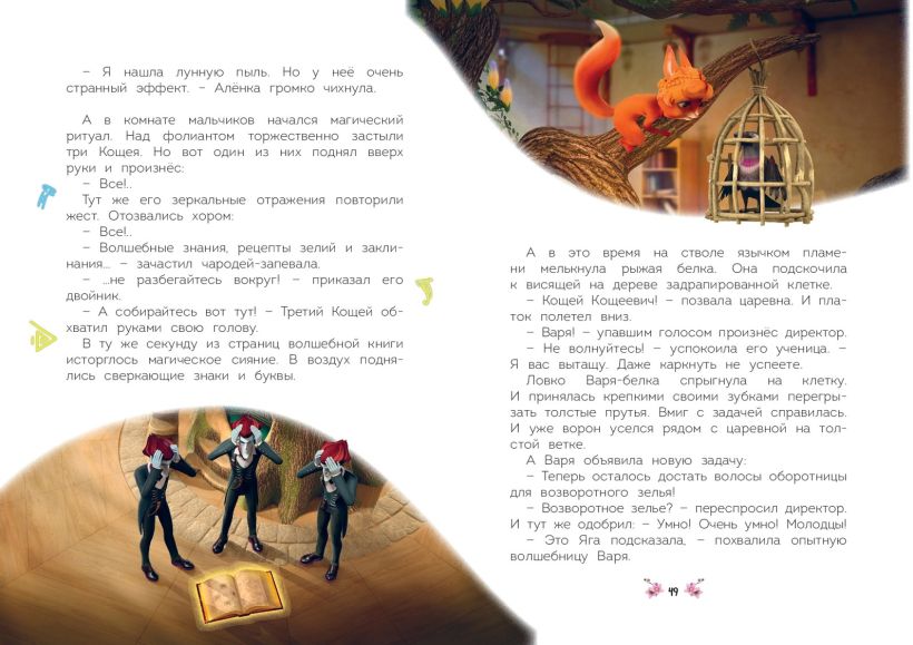 Все ученики школы Дивногорья готовятся к празднику. Мальчишки вырастили в комнате настоящее дерево, чтобы всех удивить, а девочки нарядились в чудесные костюмы. Но праздник оказался под угрозой, когда на школу напала юная оборотница Марфуша и превратила всех её обитателей в животных. До конца Всеволшебного дня царевны должны вернуть себе и Кощею настоящий облик, иначе они останутся такими навсегда. Но удастся ли им сделать это без волшебства? Узнайте в новой книге о Царевнах!
