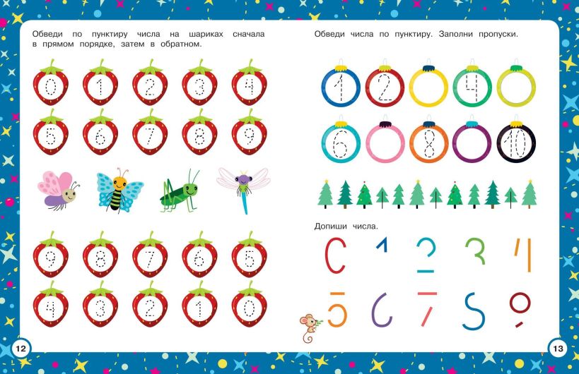 Цель пособия — помочь ребенку запомнить цифры, освоить первый счет, развить мелкую моторику и подготовить руку к письму. Выполняя интересные игровые задания, ребёнок будет обводить цифры по пунктиру, писать их самостоятельно, считать.