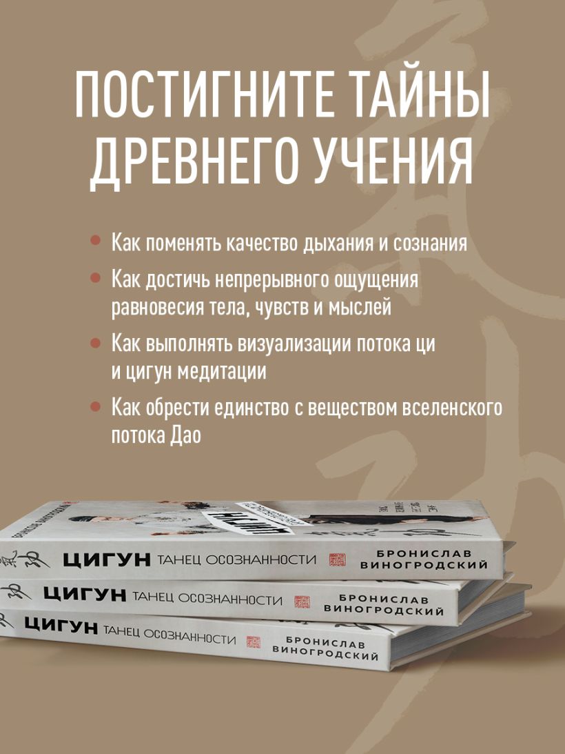 По сути, цигун сводится к осознанному совершению усилий духа, нацеленных на ощущение дыхания.В череде вдохов и выдохов человек имеет непосредственное сообщение с веществом вселенского потока Дао.