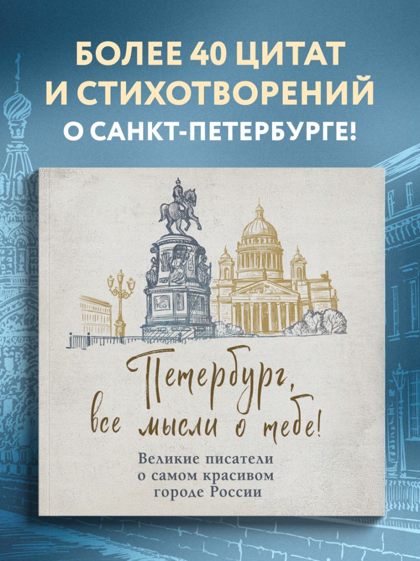 В сборник «Петербург, все мысли о тебе! Великие писатели о самом красивом городе России» вошли лучшие стихотворения, цитаты и высказывания русских писателей о северной столице — классиков из школьной программы и других уважаемых литераторов. Откройте для себя Петербург по-новому через чувства русских писателей XVIII—XX веков.