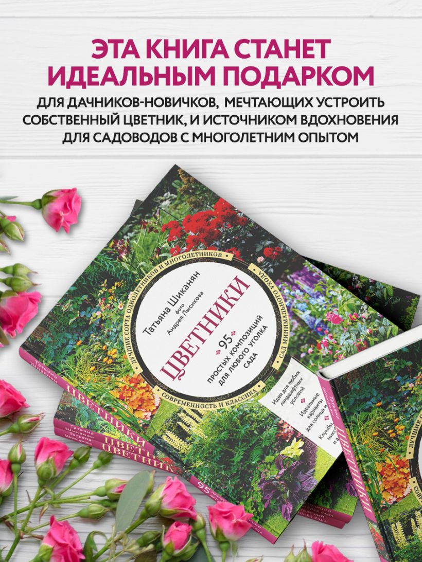 Многие мечтают создать неповторимые цветочные композиции в своем саду. Но где брать идеи? Секрет стильно оформленного загородного участка кроется в разнообразии цветников и композиций, правильно подобранных для каждого уголка — и для солнца, и для тени. В этой книге вы найдете: - самые разнообразные композиционные решения на любой вкус — от малых, состоящих всего из двух видов растений, до больших, включающих до десятка различных цветов; - подробное описание каждой цветочной композиции; - советы по посадке и уходу за растениями, а также примеры замены тех или иных видов. Необыкновенные схемы композиций в фотографиях известного ландшафтного фотографа Андрея Лысикова и авторские рекомендации Татьяны Шиканян помогут вам правильно подобрать «соседей» в цветниках и гармонично организовать пространство в любых условиях участка — на открытых солнечных местах, у стенки или забора, у воды и в окружении хвойных деревьев.