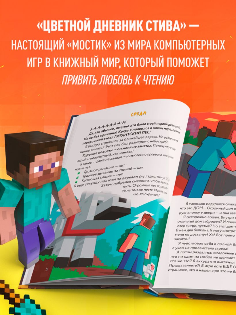 Стив был обычным школьником, но совершенно внезапно попал в «Майнкрафт»! Теперь он встретит огромного пса (а может, это не совсем пёс?), спустится в загадочные пещеры и сразится с устрашающими монстрами! Но самое главное — он найдет своего первого настоящего друга! Приготовьтесь к веселым шуткам, невероятным приключениям, встречам с криперами, пауками и многими другими героями из мира «Майнкрафт». Эта книга — ваш билет в захватывающий блоковый мир, где скучно быть точно не может!
