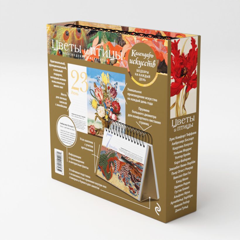 Вечный календарь «Цветы и птицы» из серии «Шедевры на каждый день» — это креативная инновация во Вселенной искусства. Календарь объединяет в себе достоинства художественного альбома, картинной галереи и путеводителя по изобразительному искусству.