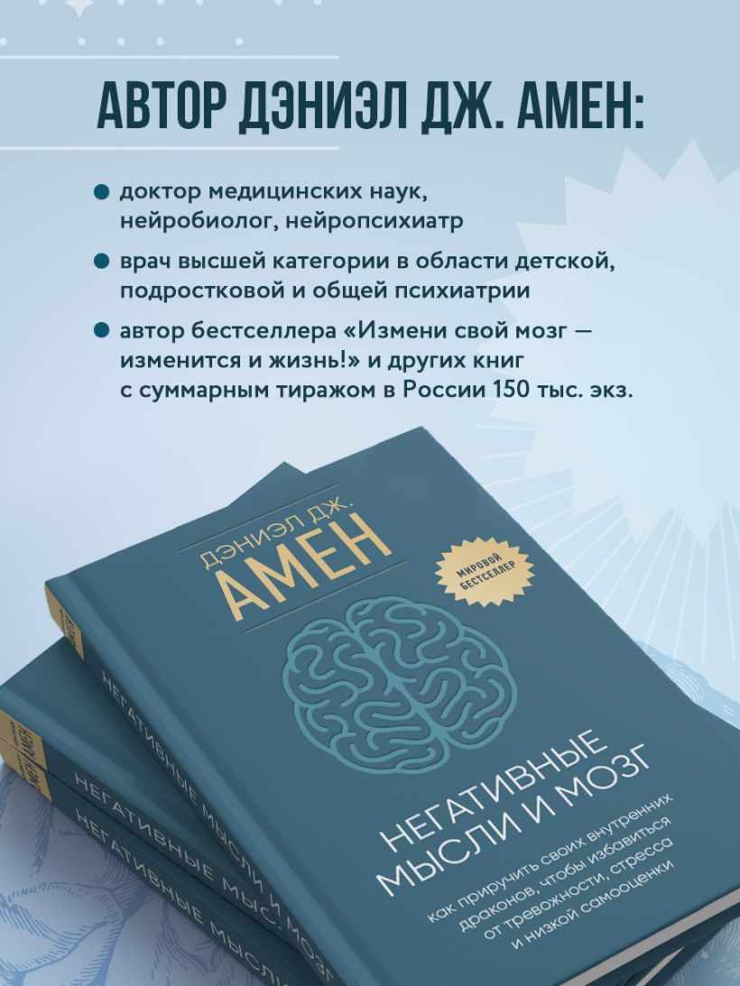 В качестве бонуса — эффективные упражнения, полезные психотерапевтические практики, аффирмации, медитации и списки фильмов для борьбы с каждым из своих внутренних драконов. Вы научитесь понимать себя и окружающих, обретете уверенность, почувствуете удовлетворение жизнью и спокойствие. Программа доктора Амена уже помогла сотням тысяч людей по всему миру. Общий тираж его книг в России — более 150 000 экземпляров.