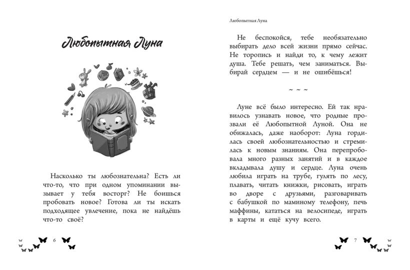 Ну а им, в свою очередь, поможет эта книга! В неё включены рассказы про девочек, которые тоже столкнулись с разнообразными неприятностями. У Люси никак не получалось испечь вкусный торт, Грейс пришлось остричь любимые волосы, а Саре — подготовить сложный школьный проект. Героини рассказов испытывали волнение, грусть, раздражение — но в итоге с помощью близких и друзей научились принимать свои эмоции и справляться с ними. А на их примере смогут научиться и маленькие читательницы!