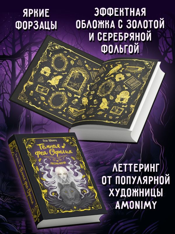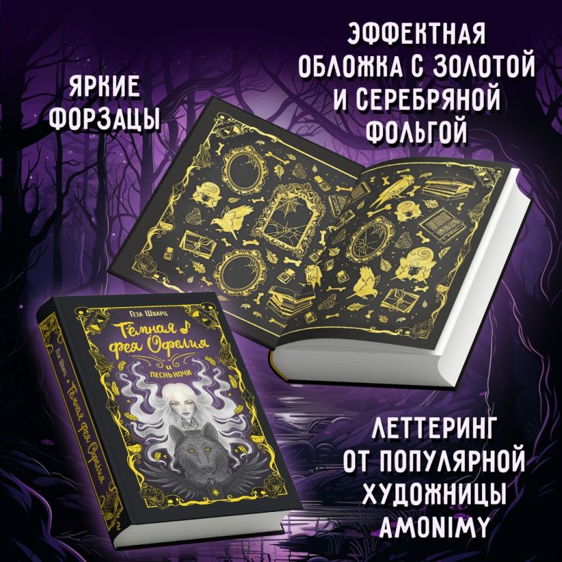 Очень эффектная обложка с золотой и серебряной фольгой! Яркие форзацы и леттеринг от популярной художницы Amonimy.
