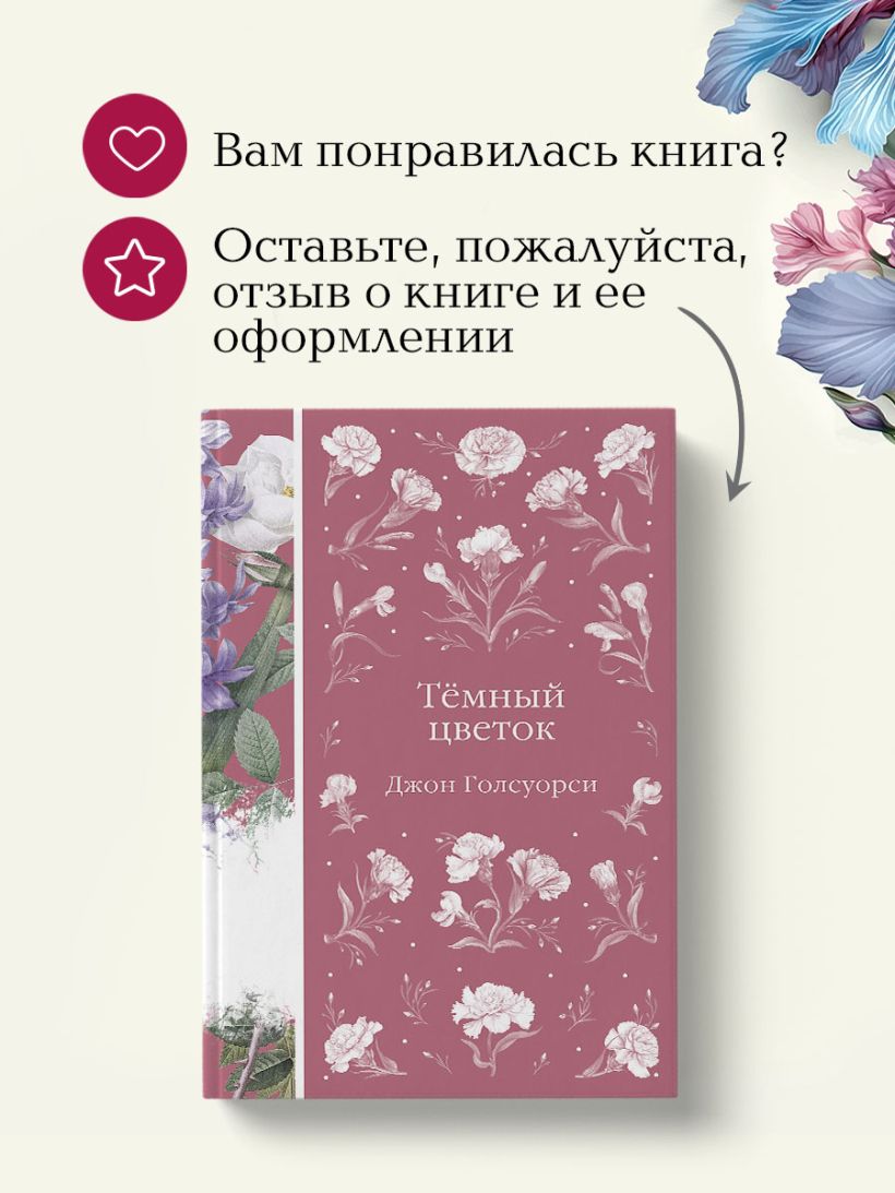 На страницах романа «Тёмный цветок» подробно описана жизнь главного героя скульптора Марка Леннана, точнее, поиск вдохновения и любви, необходимых для творчества. От робкой влюбленности в замужнюю даму, томящуюся в несчастливом замужестве в ожидании настоящего чувства, к всепоглощающей страсти, в конце концов губящей избранную им женщину, и в преддверии старости — трогательная любовь к юной Нелл, от которой приходится отказаться ради душевного покоя с детства преданной ему Сильвии. Тонкий психологизм в сочетании с истинным английским юмором, анатомия чувств мужчины, традиционное для Голсуорси внимание к деталям — всё это есть в романе, задуманном, по словам автора, как «исследование Страсти», символом которой становится темно-красная гвоздика. Страсть в этом романе — жестокая, тёмная, разрушительная сила, способная сломать жизнь любимой женщины.