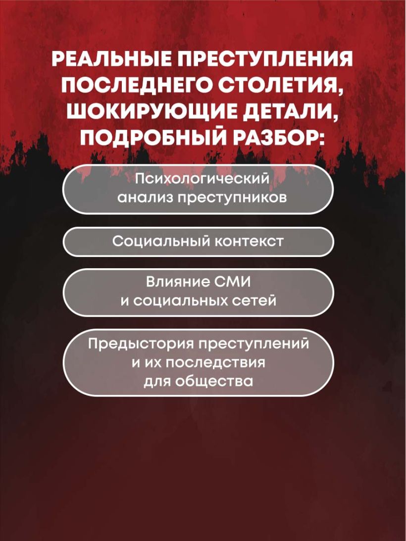 Каждая история в этой книге — это увлекательная головоломка, где переплетаются психические расстройства, размытые моральные границы и проявления абсолютного зла. Восемь захватывающих глав погружают читателя в анализ шокирующих уголовных дел, тщательно отобранных автором.